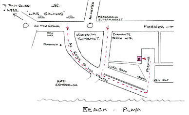 Rehearsals for the whole cast are on Thursday evenings, at the Footlights Centre in Calpe (see map below), from 7:30 onwards. Principals may also be called for rehearsals on Monday evenings.